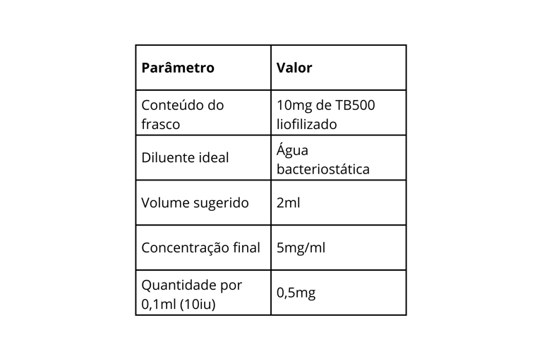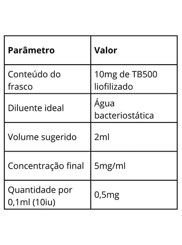 Cada 0,1ml (10iu) contém 0,5mg de TB500