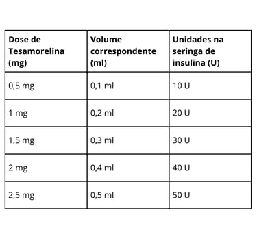 Cada 0,1ml (10iu) contém 0,5mg de Tesamorelina