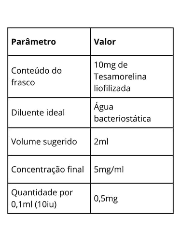 ⚠️ A Tesamorelina pode formar leve espuma durante a reconstituição, deixe assentar naturalmente.